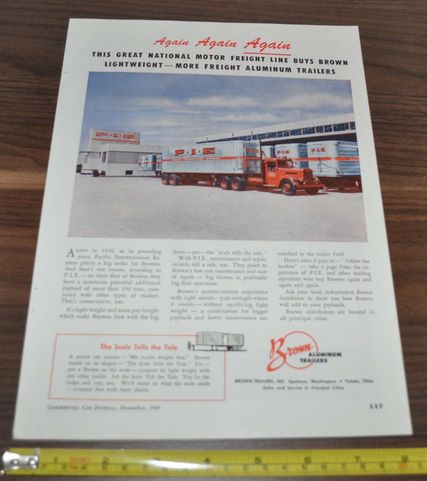- 1949 Brown Trailer Truck Ad Vans PIE Peterbilt Tractor Thermoid
