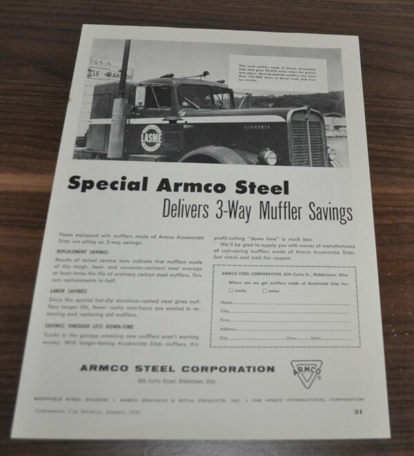- 1956 Kenworth Truck Ad Special Armco Steel LASME York-Hoover Body Rheingold Beer