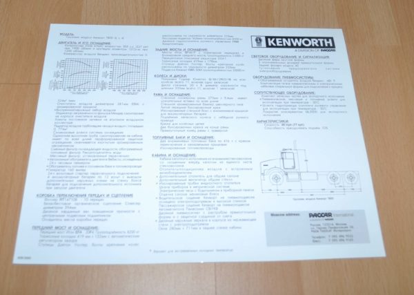 - 1993 Kenworth T800 Russian Edition Truck Brochure Prospekt
